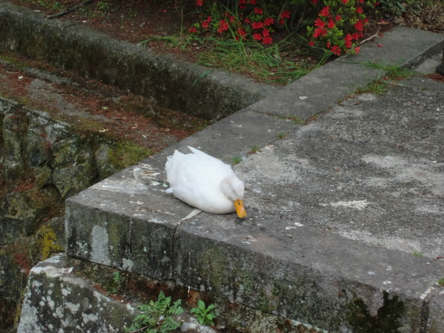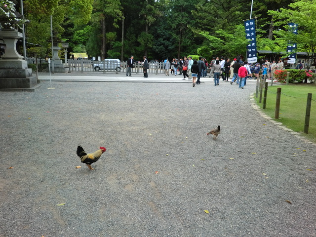 鳥居前のお濠にあひるがいたり、境内の中に鶏がいたり、全体的にのんびりした神社でした。