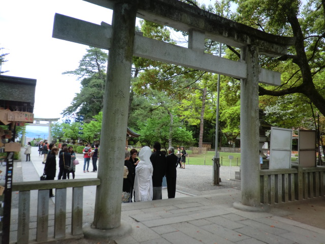 常盤ホテルでも結婚式をするカップルを見かけましたが、この神社でも見かけ、きっと今日は日がいいんだね~などと話していましたが、よく見るとそれは常盤ホテルで見かけたカップルのようでした。ここで式を挙げてホテルで披露宴なんでしょうね。