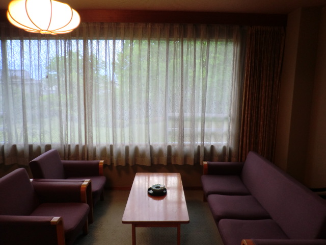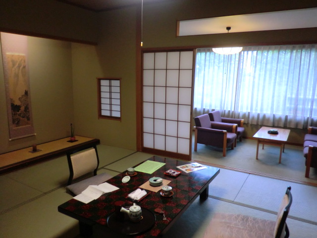 離れのお部屋もたくさんあり、昭和天皇もお泊りになったとか。解説によると、迎賓館として建てられたホテルだということ。空間も大きく使っていてゆったりしているのはそんな背景のせいかもしれません。