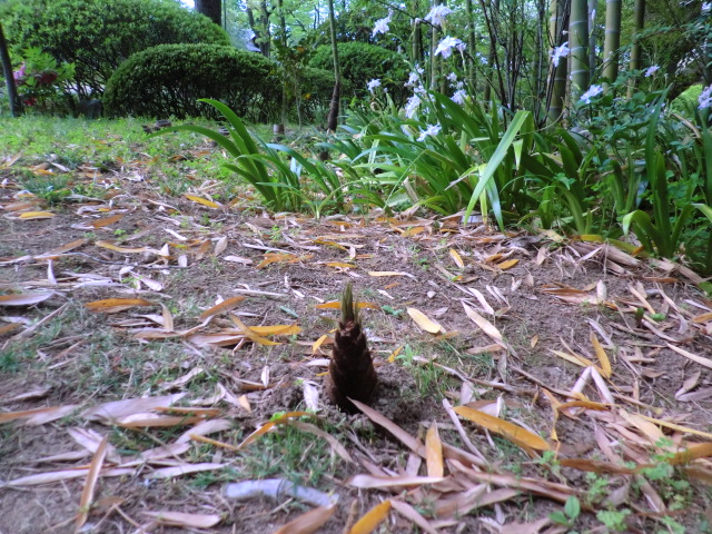 離れのお部屋の前の渡り廊下の傍には牡丹の花が咲いていました。そして筍も・・・。常盤ホテルさん、お世話になりました。