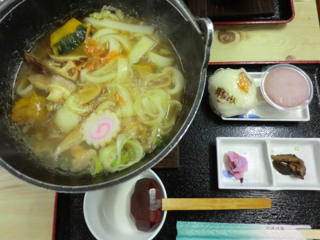 私はかぼちゃほうとう鍋にしました。ほうとうといえば、かぼちゃ入りでなくては・・・。ほうとう饅頭やデザートもついて1,100円です。