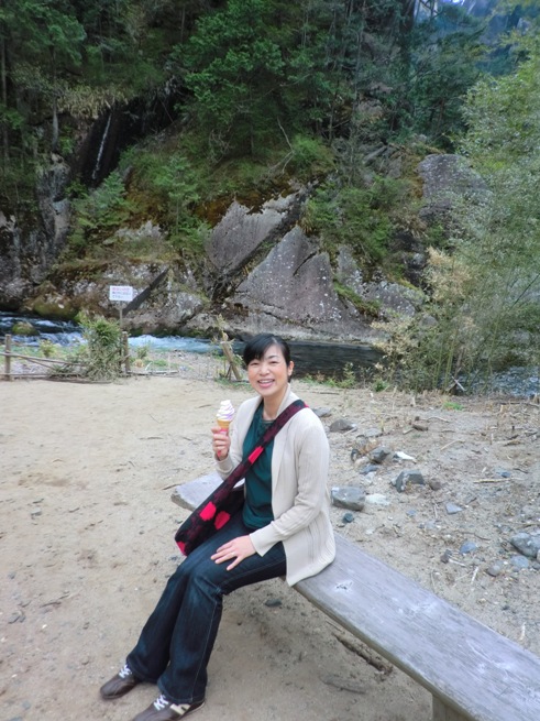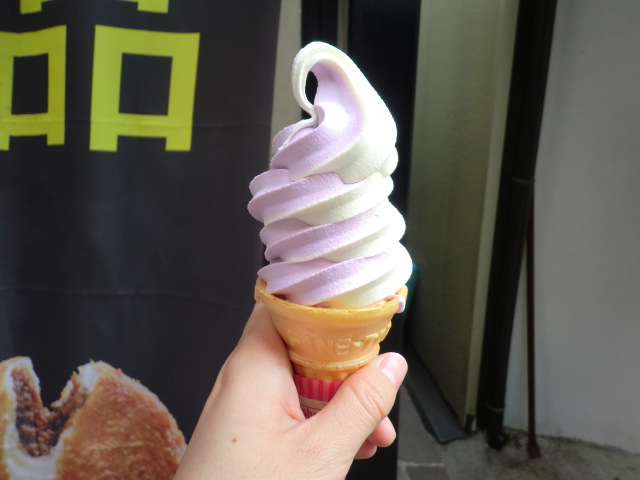 そしてロープーウェイでパノラマ台を見た後は、やはり山梨といったらこれでしょ!という巨峰ソフトクリームを堪能しました。白桃も捨てがたいのですが、この周辺では圧倒的に巨峰がメインでしたね。