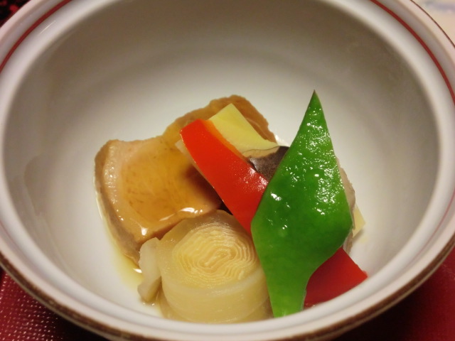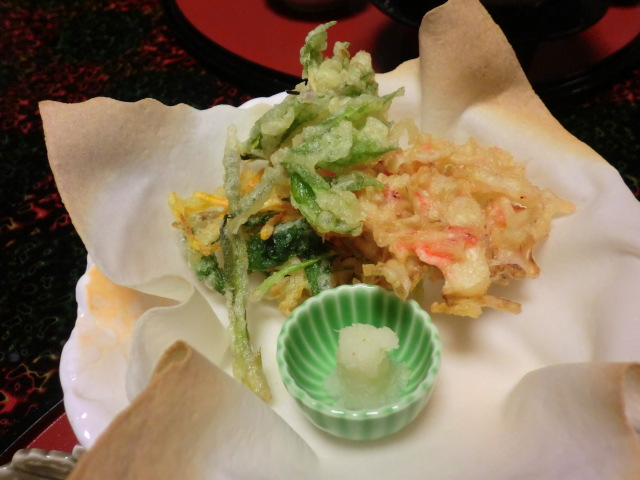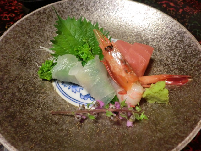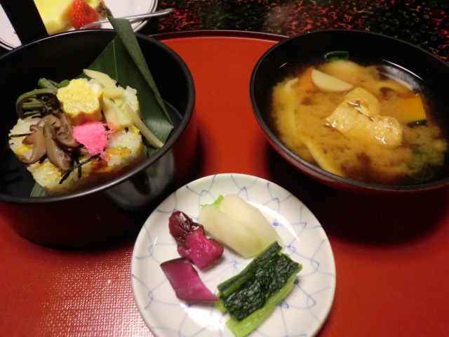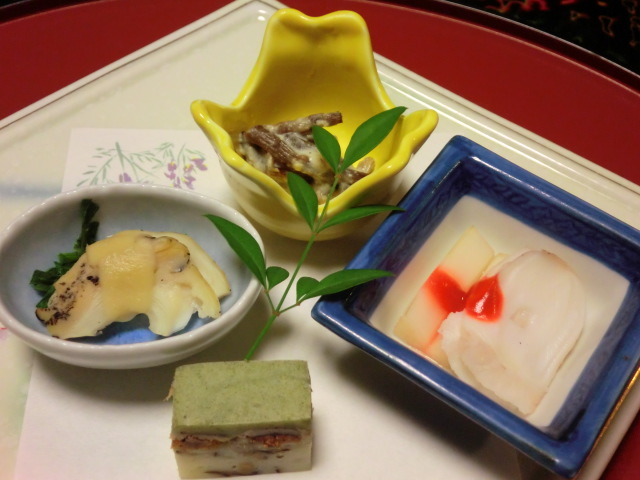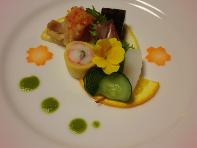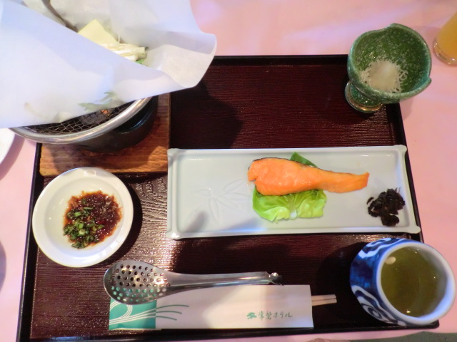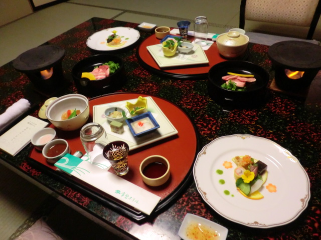 本来なら、ゆっくりと飲みながらの食事なのでしょうが、うちは全く飲まないのでひたすら食べて、食べに食べて、それでも2時間少しというゆったりした食事でした。どれもこれも美味しかったです。盛りつけがきれいだし、目でも楽しめました。そして、お腹いっぱい。これではなかなか次のお風呂に行けません。