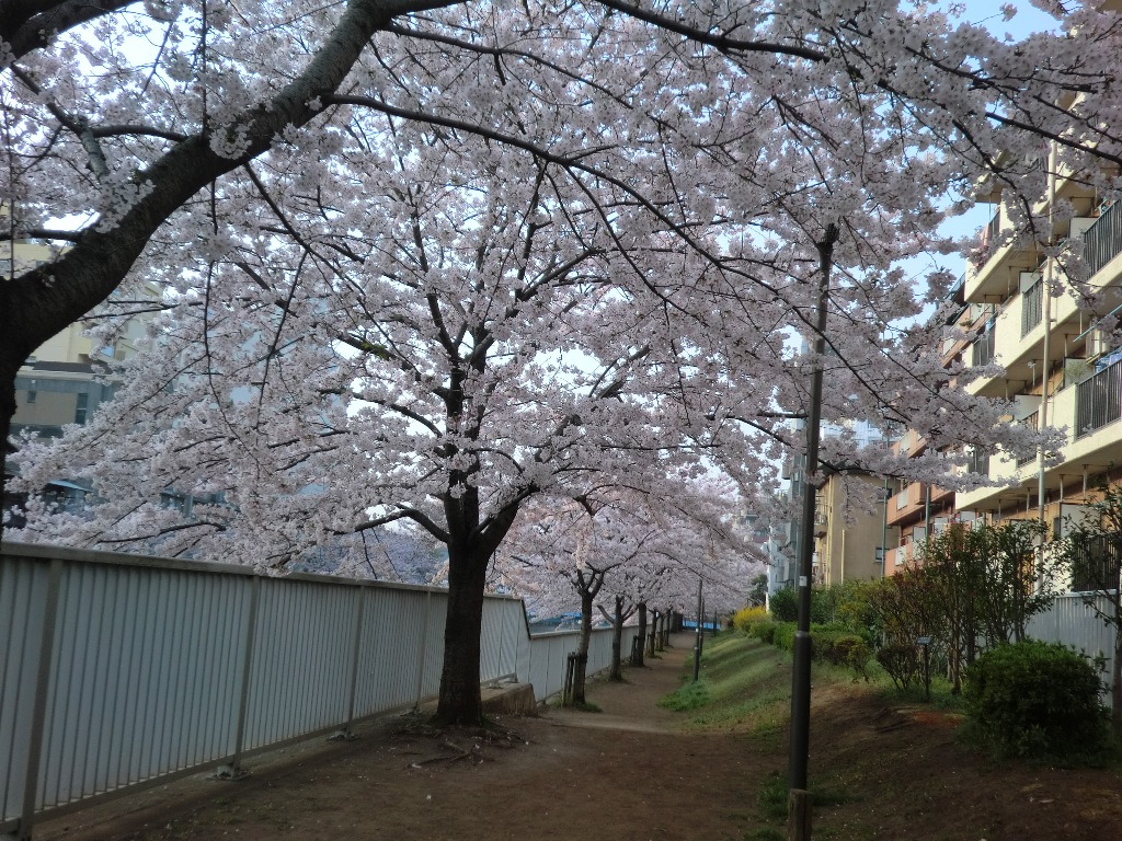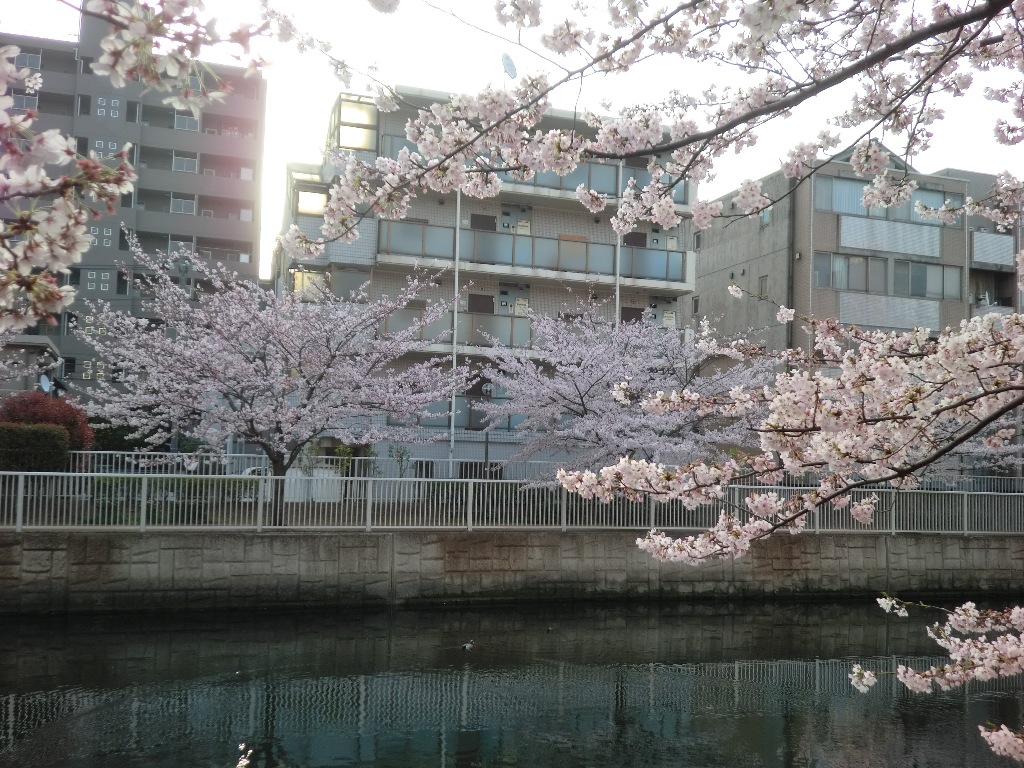 両岸には桜並木。終わりかけた水仙、チューリップのつぼみ。菜の花や大根の花も咲いていました。椿はもう終わりかな・・・。れんぎょうや紫陽花の葉っぱも発見しました。桜の花は、川の片方の岸の方がより咲いているのは、日当たりの関係でしょうか。
