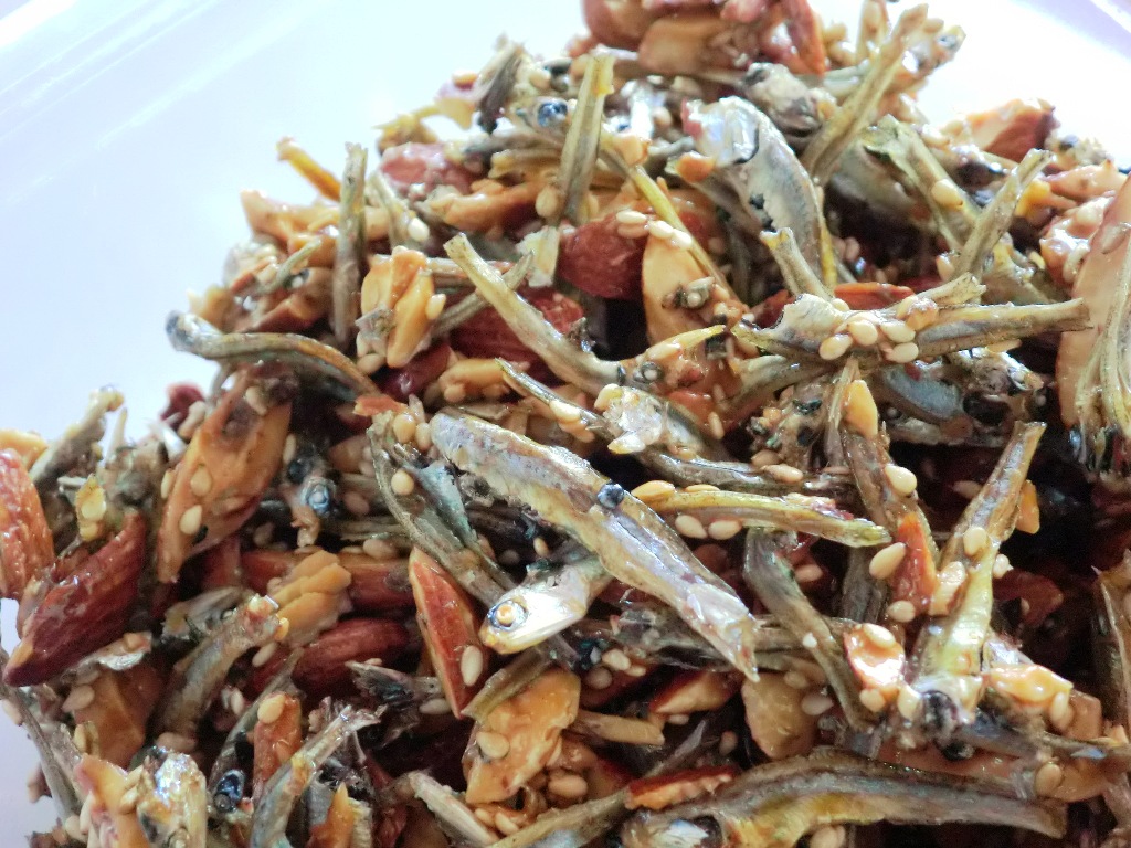 そして、調味料が熱いうちに、煮干しとアーモンドとゴマと調味料を混ぜてできあがり♪