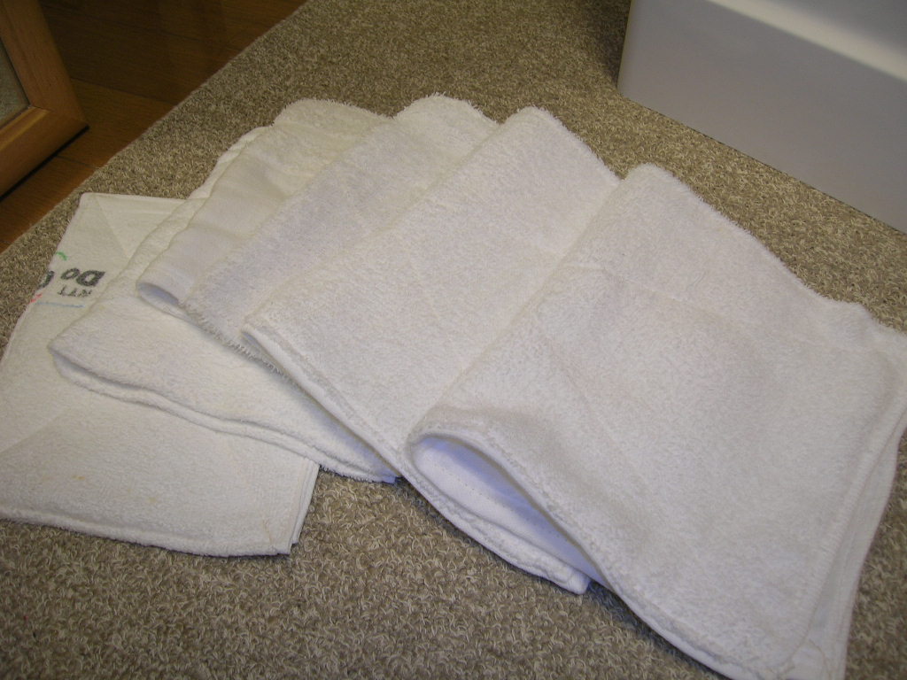 職場のお茶当番をしていて、ぞうきん(ふきん?)の数が足らないと思ったので積み上がっていたタオルを何枚か持って帰ってきました。「ミシンデビューにちょうどいいかも・・・