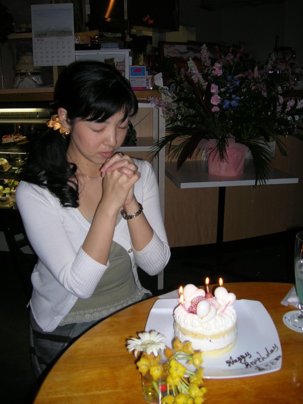 食事の後は、バースディケーキが登場!知らなかったけど、用意してくれてたようです。ろうそくを消す前にバースディウィッシュ。