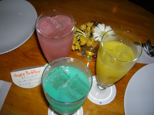 偶然にも3色揃ったカクテルでテーブルも一気にカラフルに♪
