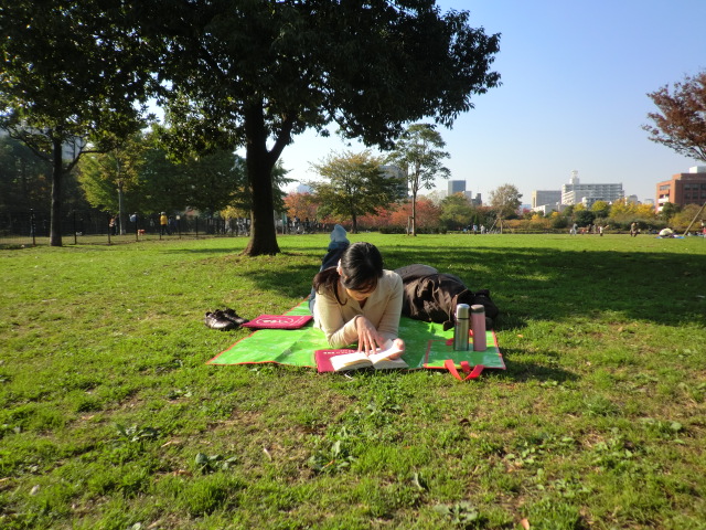 曇りの予報だったのに晴れていたので、いつもランニングに行っている公園にピクニックに行きました。