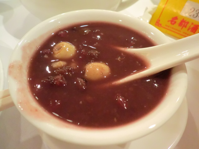お汁粉は、飲茶コースの最後に出てきました。点心をたらふく食べてお腹がいっぱいのはずなのに、するすると入ってしまい、食べてる本人がびっくりです。