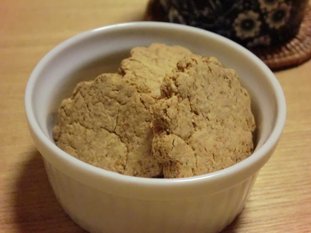 左前:豆乳きなこクッキー 右前:先日の基本のクッキー(全粒粉とメープルシロップ)