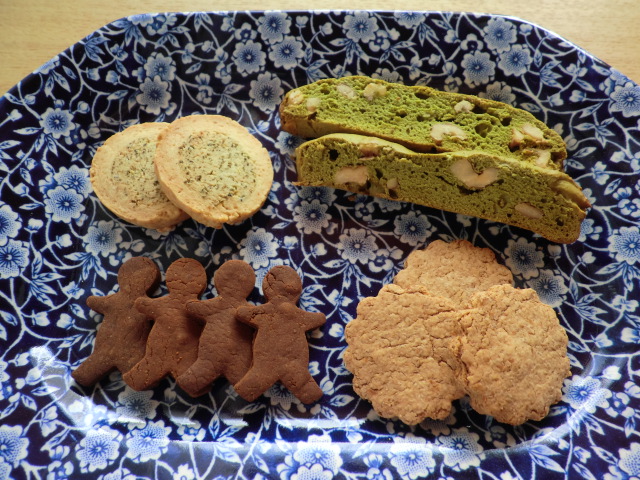 先日の「素朴なクッキー」に続き、今日は「豆乳きなこクッキー」「チャイクッキー」「抹茶とくるみのビスコッティ」を作ってみました。