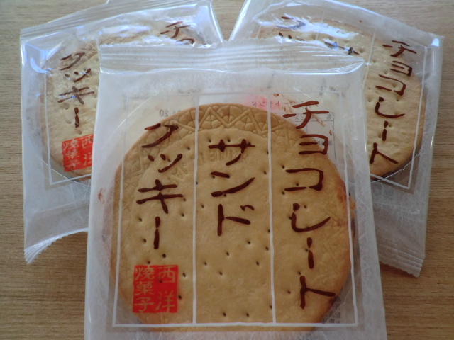 中でも、このチョコレートサンドクッキーは秘かな人気で、以前別の「夢や」さんの近くで働いている時に、しょっちゅう買っていました。チョコレートがサンドされた直径11cmのビスケットが2枚入って174円。(前は150円だったような記憶がありますが)。裏を見ると、味同心会菓子卸協同組合って書いてあります。大阪か・・・。