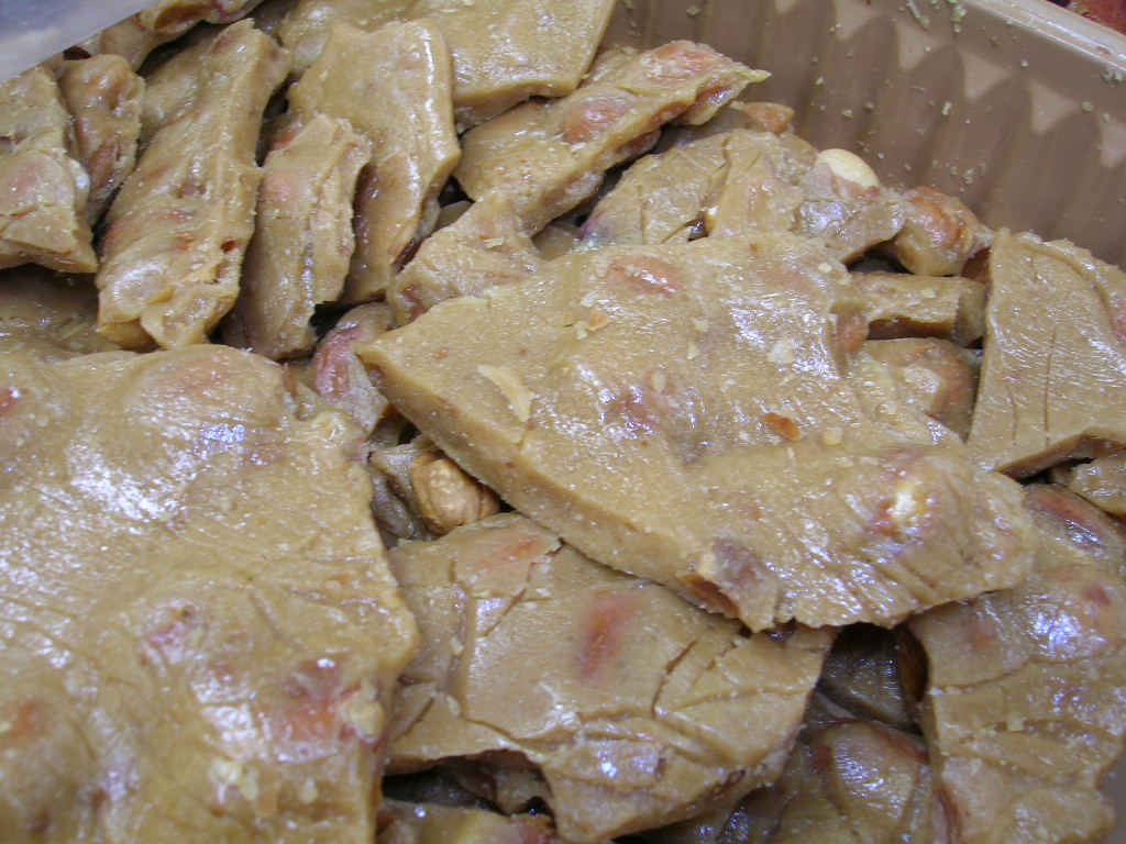 そして、最後はワシントンD.C.からのお土産です。「オバマ饅頭」を買ってきて欲しいとお願いしていたのですが(そんなものあるのか?)、やはりアメリカで饅頭は難しかったということでやってきたのは、「ピーナッツ・ブリトル」という板状のパリパリしたキャラメルでした。Brittleという意味がわからなかった私は辞書で調べてみると、(堅いけど)もろいもの、と出ていました。確かに堅いキャラメルだけど、簡単に割れてしまいます。食感はサクサク。味は甘くてちょっとしょっぱくて、これは美味しい。箱を開けた途端に群がる人々、そして減っていくブリトルさんたち。