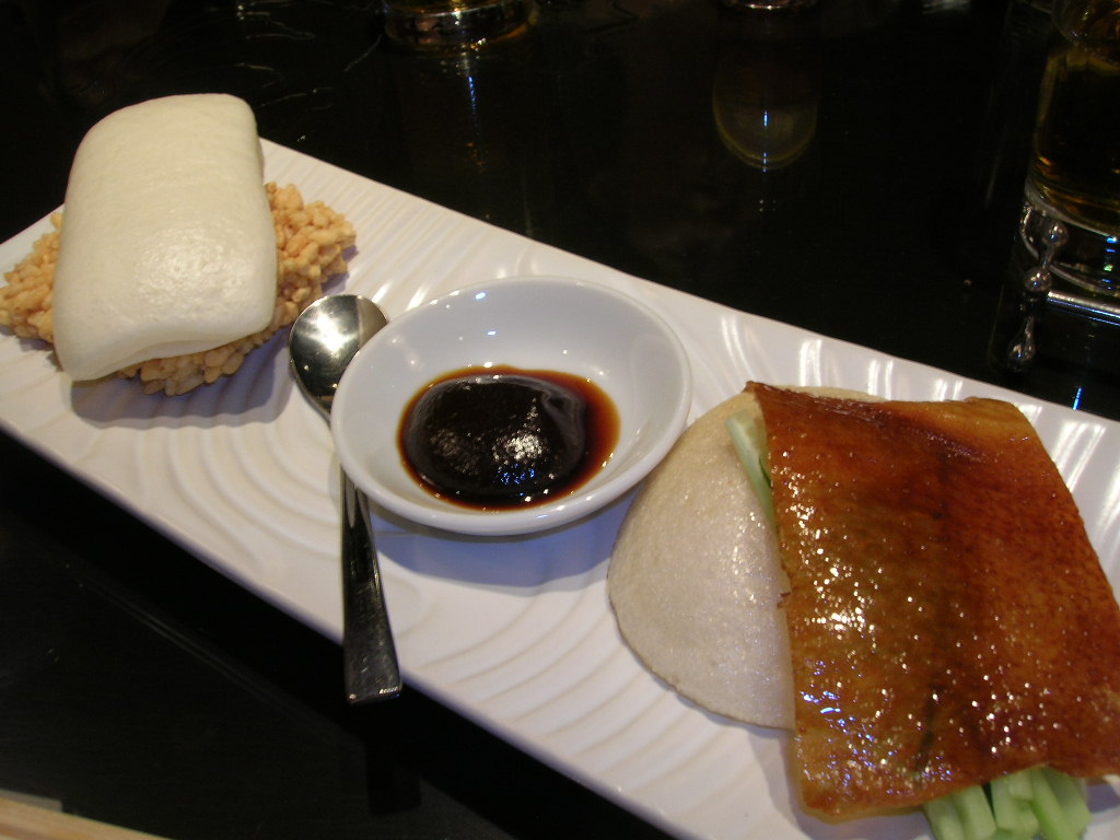 次々に運ばれる(時々目の前で味付けをし、盛りつけて下さる)初めて食べるタイプの中華料理でした。真鯛の活造り、牛友三角肉のカルパッチョ、蟹爪の湯葉包み、特製北京ダック・・・・。出てくるもの出てくるもの全部が美味しくて美味しくて、食べる時はひたすら無言(集中)、そして食べ終わると歓談(新婚はいじられたり)、そして次の料理が運ばれるとまた料理に集中、そしてまたおちょくりの時間。