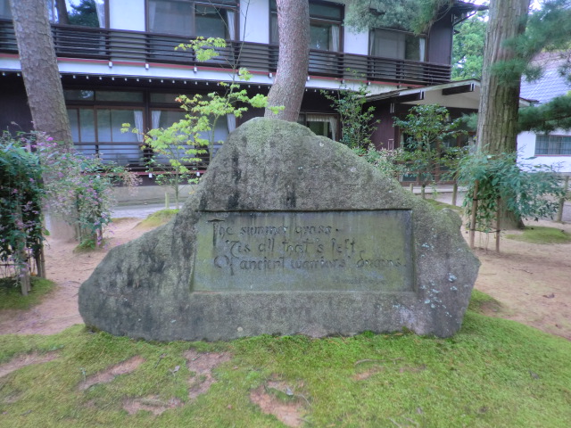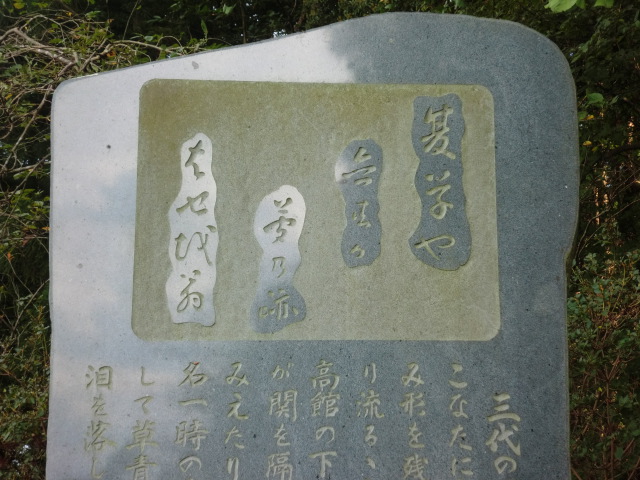 先ほども触れましたが、芭蕉の「夏草や・・・」の歌碑にある謎の言葉は、「はせを翁」という芭蕉のペンネームのようなものだということでした。義経館の人が教えてくれましたが、あまり詳しくはないようでした。(はせおう と発音)