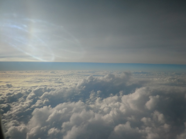木曜の朝、成田にてチェックインを済ませ、飛行機は台北目指して定刻の9:40に飛び立ちました。飛行は順調。でも台北の空港がすごく混んでいて、着陸まで周辺をぐるぐる回り、結局30分弱遅れて台北に到着しました。降りると、係の人が「乗り継ぎ、乗り継ぎ」と言いながら、道案内をしてくれます。それに従って進むと、また荷物検査があり、次の飛行機の出発ゲートに着いたのが出発時間13:40の30分前くらい。(台湾は、日本より1時間遅れの時差があります)