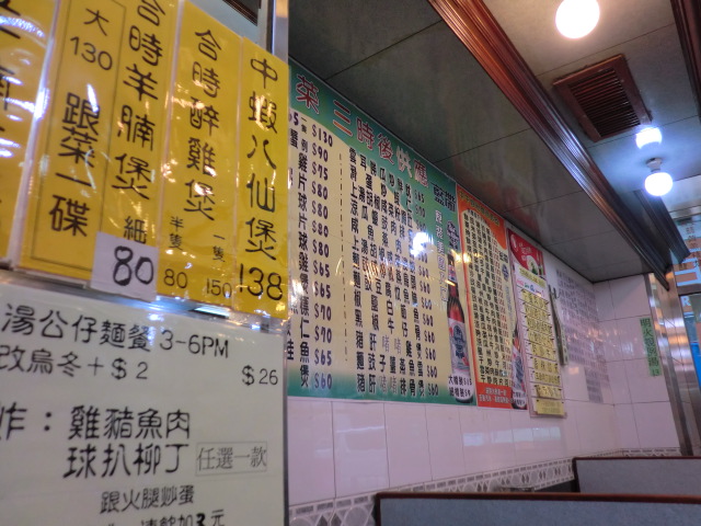 辺りを見回してみると、この手の「茶餐廳」とついたお店、たっくさんあります。どこでもたいして変わらないように見えました。ひとりでも入れるし、観光客でももちろんOK。メニューいろいろあるし、安いし、人によっては味が濃いと思いますが(私には濃かったので喉が渇きましたが)、手軽に食事を済ませたい時はおすすめです。
