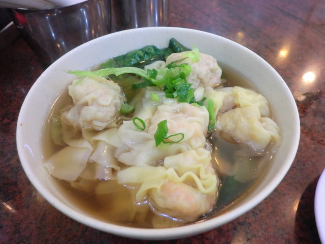 でも食べなきゃいけない。と、メニューを見せてもらって「海老ワンタン麺」を頼みました。(メニューには英語表記があります)