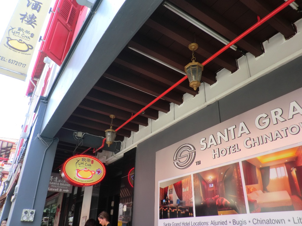 奥さまに案内されたのは、飲茶酒樓というレストランでした。外には可愛らしい看板がかかっていて、ホテルの2階にありました。上がってみると、12時前なのにわりと混んでいましたが、すんなり通してもらえました。