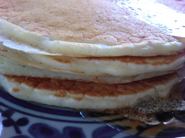 そしてパンケーキは、カナダで毎週日曜日の朝に焼いて食べていたもの。イースターの前の「パンケーキの日」に食べるもの。ちょっと薄くて何枚も重なってるイメージです。