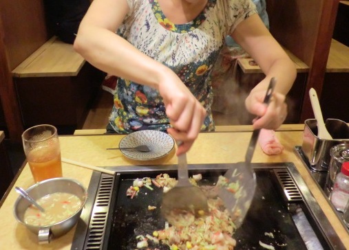 最初はお店のおにーさんに焼いてもらって、ふたつ目からは自分たちでがんばりました。