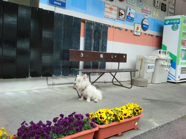 食事を終えて外に出ると、駐車場にきれいな花が咲いていました。何の花かわからなかったけど、前で写真を撮るととても絵になります。つながれてご主人さまを待つかわいいワンコにも遭遇し、お店の前に鎮座する、「日本一大きなほうとう饅頭」の写真を撮りました。何かに似ていると思ったら、先週洗濯した抱き枕のしろちゃんにそっくりでした。