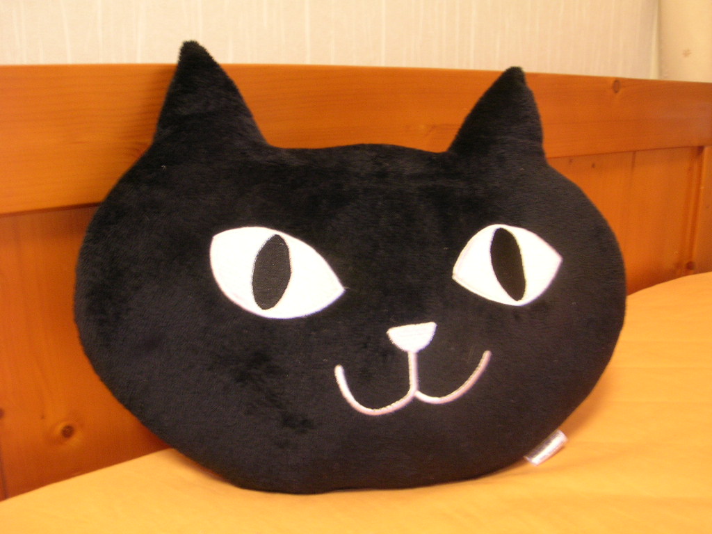 ん?と思ってみると、そこには黒猫の顔のかたちをしたクッションが!!